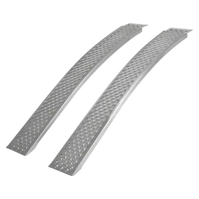 Die AL-KO Auffahrrampe ist simpel und praktisch: Dank rutschhemmendem Lochkantenprofil ist sie besonders griffig und durch Abrutschsicherungsbolzen wird sie extra fixiert. Eine Spezial-Aluminiumlegierung macht die Rampe langlebig und korrosionsbeständig. Der Übergang von Ladekante zu Rampe ist ganz sanft und macht das Arbeiten komfortabel. Sie ist insbesondere für die AL-KO Rasentraktoren geeignet und lässt sich mit bis zu 400 kg belasten. Durch ihre Biegung ist sie ideal für Fahrzeuge mit geringer Bodenfreiheit.