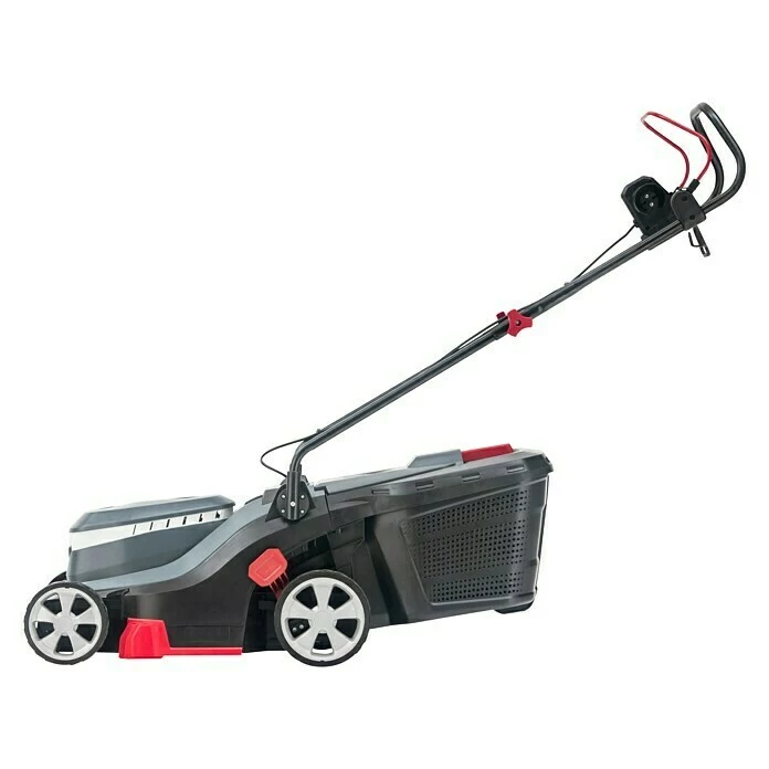 Design – neu definiert im AL-KO Elektro-Rasenmäher 3.22 E Easy – Unsere neue Designsprache kommt auch im Einstiegssegment unserer Elektrorasenmäher zum Tragen. Chickes, neues Design gepaart mit hohen Wiedererkennungswert – unsere neue Designsprache. – Wendig mit viel Ausstattung – Der Elektro-Rasenmäher ist dank emissionsfreiem und flüsterleisem Betrieb Ihr perfekter Helfer für die Rasenpflege in jedem Wohngebiet. Mit seinem 1200 W starkem Elektromotor bewegen sich ohne Abgase, Motoröl, Hitzeentwicklung und Lärm. Der Kabelbetrieb erlaubt dabei ein leises Arbeiten ohne Rücksicht auf Ladezeiten oder Nachtanken – und ohne extra Gewicht durch Akku oder Benzintank. Das Erfolgserlebnis: leichtgängiges, grünes Mähen mit wenig Gewicht und viel Fahrkomfort. – Dabei besticht das kompakte Modell 3.22 E Easy mit 32 cm Schnittbreite besonders durch seine kompakte Bauform ohne überstehende Räder – ideal für das präzise, kantennahe Mähen in Ecken und kleinen, verwinkelten Gärten. Mit seinem stabilem Tragegriff, der zentralen Schnitthöhenverstellung und dem geringen Gewicht von 12 kg haben wir viele Komfortelemente in diesem Rasenmäher verbaut – ideal auch für Gartenbesitzerinnen oder Senioren, die Wert auf eine mühelose Handhabung legen. – Der Mäher ist mit seinen 32 cm Schnittbreite und seiner 35 L Kunststofffangbox für bis zu 250 m² Rasenflächen geeignet. Dank aerodynamischer Gehäuseform und großer Öffnung wird das Schnittgut optimal gefangen und der kompakte Grasfangkorb effizient gefüllt. Zudem erleichtert Ihnen die Fangbox mit Füllstandsanzeige und Tragegriff zum einfachen Entleeren, das Arbeiten. Der klappbare Holm sorgt für eine platzsparende Aufbewahrung.