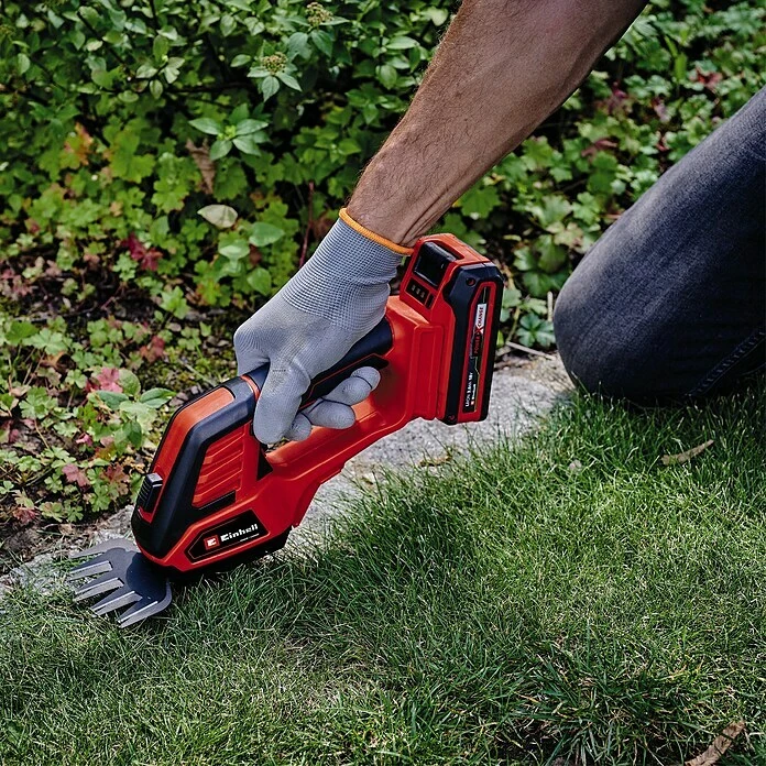Die Einhell Akku-Gras- und Strauchschere GE-CG 18/100 Li-Solo ist ein leistungsstarkes Mitglied der cleveren Power X-Change-Familie. Das Akku-Gerät ist eine bequeme Alternative zu handgeführten Astsägen oder Gartenscheren. Sie ist außerdem leichter, geräuschärmer und flexibler einsetzbar als die benzinbetriebenen oder elektronischen Varianten und somit der ideale Helfer zum Stutzen, Formen und Ausdünnen von Sträuchern und Bäumen. Das Grasschneideblatt ist perfekt zur Pflege von Rasenkanten (100 mm) geeginet. Für die Hecken- und Buschpflege sind die lasergeschnittenen und diamantgeschliffenen Strauchscherenmesser ideal geeignet. Der Werkzeugwechsel erfolgt ganz einfach und werkzeuglos. Im Einsatz bietet der Softgrip perfekten Halt und Ergonomie bei jeder Bewegung. Das abgedeckte Getriebegehäuse schützt im Einsatz und bei der Säuberung vor Berührungspunkten mit Teilen, die mit Getriebeöl geschmiert sind. Zum Betrieb ist 1x 18 Volt PXC-Batterie notwendig. Akku und Ladegerät sind nicht im Lieferumfang enthalten und sind separat erhältlich.