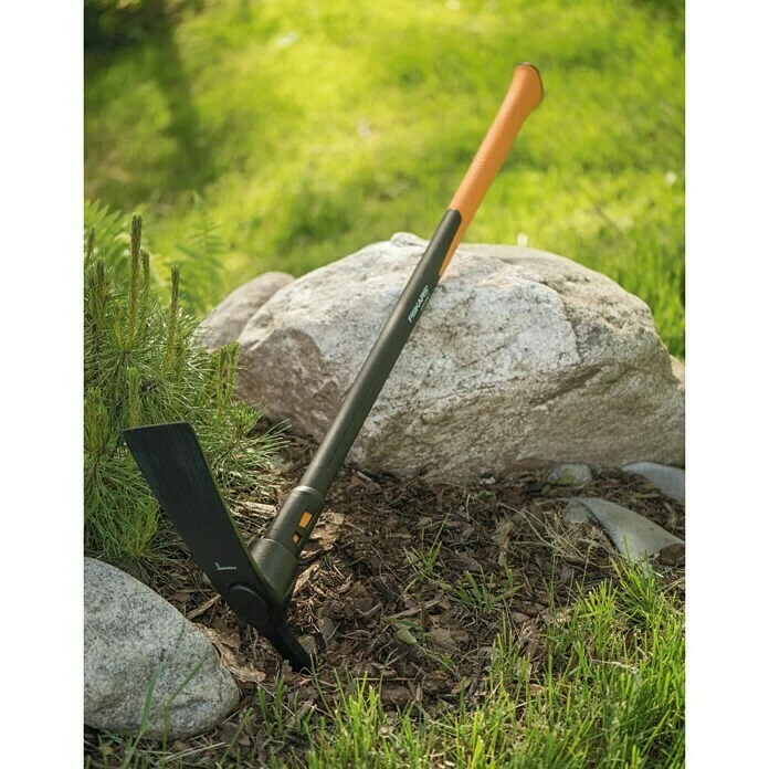 Die Kreuzhacke L von Fiskars ist ein sehr stabiles und hochwertiges Werkzeug. Sie besitzt eine Hacke aus gehärtetem Stahl und ein festen Stiel aus Fiberglas, wodurch eine lange Lebensdauer erreicht wird. Dank des ergonomischen Griffs liegt die Kreuzhacke sicher in der Hand. Sie verfügt über eine optimale Balance zwischen Kraft und Gewicht und sorgt daher für eine bessere Kontrolle beim Hacken. Mit den scharfen Endstücken lassen sich harte und steinige Böden bearbeiten sowie Wurzeln im Garten entfernen.