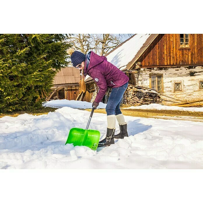 Der grüne Kunststoff-Schneeschieber von Freund Victoria ist mit einer Aluminium-Profilkante ausgestattet. Das Blatt ist rippenverstärkt und hat eine Arbeitsbreite von 40 cm, wodurch sich große Schneemengen beseitigen lassen. Das Kunststoffblatt ist bis -20°C kältebeständig. Für ein rückenschonende Arbeitshaltung sorgt der leichte Aluminiumstiel. Der Kunststoff-D-Griff ermöglicht bessere Griffmöglichkeiten. Vom Hersteller wird außerdem eine Garantie von 5 Jahren gegeben.