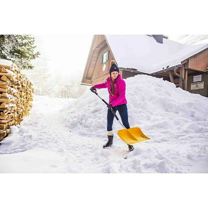 Der Kunststoff Schneeschieber mit PVC überzogenem, ergonomischem Aluminiumstiel von Freund Victoria überzeugt durch seinen extrem leichtes Gewicht. Der Kunststoffüberzug ist kälteabweisend und rutschfest zugleich. Das 53 cm große, rippenverstärkte Blatt ist mit einer Alu-Profilkante ausgestattet. Für ein rückenschonendes Schneeräumen sorgt zusätzlich der robuste D-Griff aus Kunststoff.