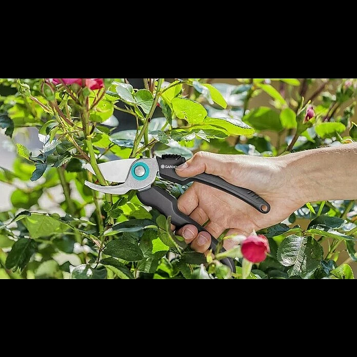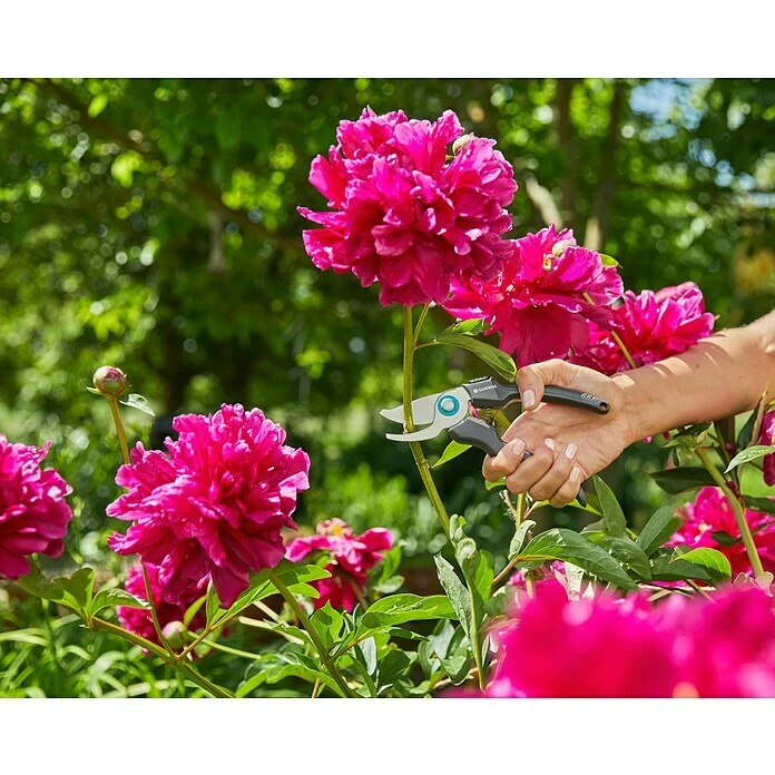 Die EcoLine Gartenschere ist der moderne und nachhaltige Klassiker unter den Gartenscheren von GARDENA. Das nützliche Helferlein bei der Gartenarbeit. Sie ist mit ihrem Schneid-Durchmesser von 18 mm die optimale Lösung für das präzise und kraftvolle Schneiden von Blumen oder jungen Pflanzentrieben. Die Schere wurde mit Kunststoff aus mehr als 80 Prozent recyceltem Material entwickelt, insbesondere aus Haushaltsabfall. Beide Klingen des Schneidkopfes sind aus rostfreiem Edelstahl. Die verarbeiteten Stahlelemente der Schere wurden mit einem Anteil an recyceltem Material von mehr als 75 Prozent hergestellt. Die Blumenschere ist nicht nur besonders robust und langlebig, sondern überzeugt auch mit einem schicken und klassischen Design. Der abgewinkelte Schneidkopf der Schere verfügt über ein Bypass-Schneidprinzip mit präzisionsgeschliffenen Klingen. Mit Hilfe des ergonomisch geformten Griffs liegt die Gartenschere optimal in der Hand, sodass die Schneidearbeiten noch effizienter werden. Die Saftrille und Drahtschneidefunktion sind weitere praktische Funktionen der EcoLine Gartenschere. Mit dem Einhand-Sicherheitsverschluss kann die Schere einfach verriegelt und sicher aufbewahrt werden. Die EcoLine Gartenschere ist Made in Germany. GARDENA zeichnet sie mit einer Herstellergarantie von 25 Jahren aus.