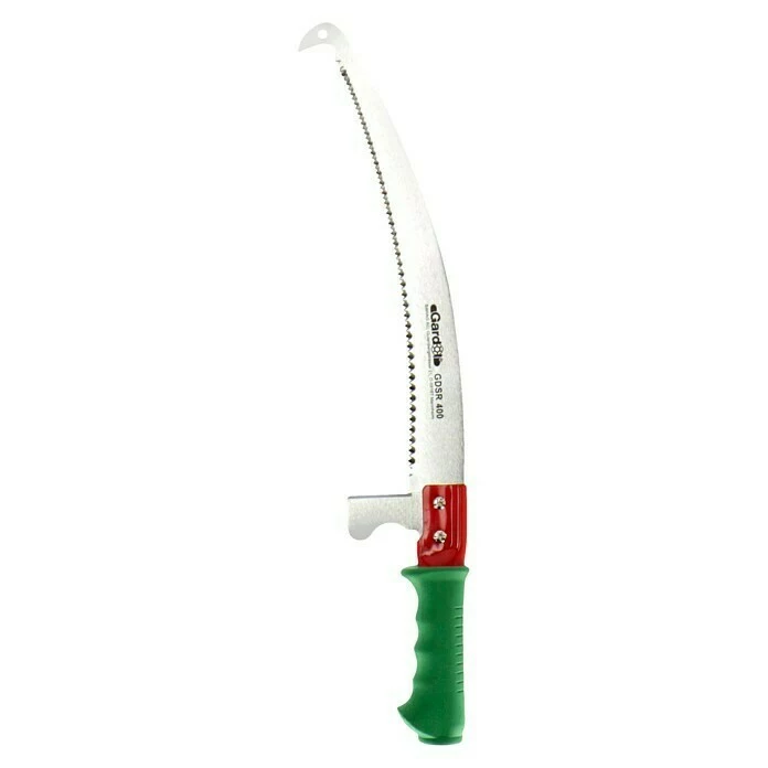Die Gardol Baumsäge mit praktischem Räumhaken ist flexibel einsetzbar. An gut erreichbaren Ästen ist sie einfach als Handsäge zu verwenden, während sie durch Einsatz des teleskopierbaren Gardol-Stiels (separat erhältlich) auch problemlos Äste in der Baumkrone schneidet. Diese Baumsäge ermöglicht durch ihren 3-fach Schliff einen sicheren und einfachen Schnitt. Ein Räumhaken am vorderen Teil des Sägeblattes erleichtert das Herausziehen abgesägter Äste. Durch das Sägeblatt aus legiertem Federstahl mit hartverchromter Beschichtung ist die Baumsäge gegen Rost geschützt und äußerst langlebig.