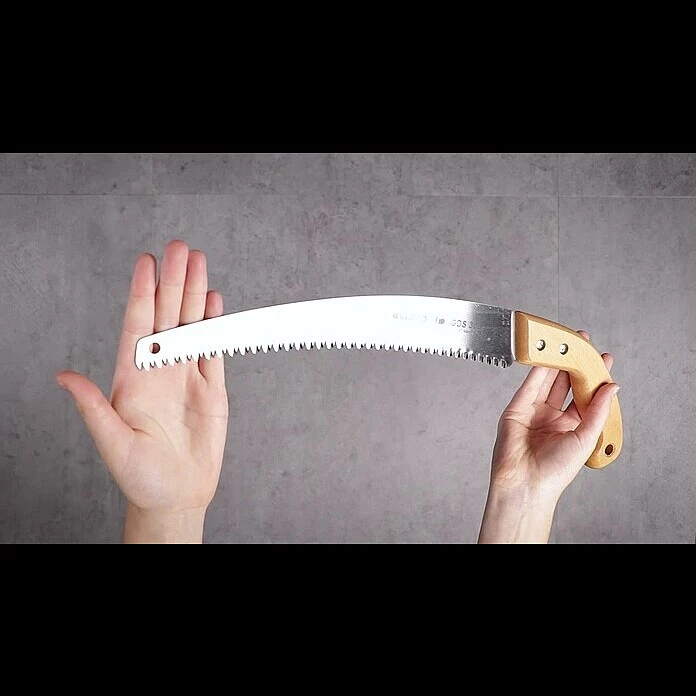 Die Gardol Comfort Baumsäge ist eine klassische Baumsäge mit gebogenem Sägeblatt und Holzgriff aus Esche. Das Sägeblatt wurde aus legiertem Federstahl gefertigt und hat einen 3-fach-Schliff. Die gebogene Form der Baumsäge sorgt dafür, dass nur wenig Führung nötig ist. Durch den angenehm in der Hand liegenden Holzgriff und den Präzisionsschliff geht das Sägen von Ästen und kleinen Bäumen leicht von der Hand. Die Säge eignet sich insbesondere für die Pflege von Obstbäumen und anderen Nutzbäumen.