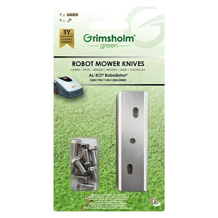 Messer für Mähroboter. Sie wurden optimiert nach Stärke, Schärfe und Langlebigkeit für perfekte Schnittresultate. Sämtliche Messer sind biegsam, um zu verhindern dass abgebrochene Klingenteile im Rasen verbleiben.
