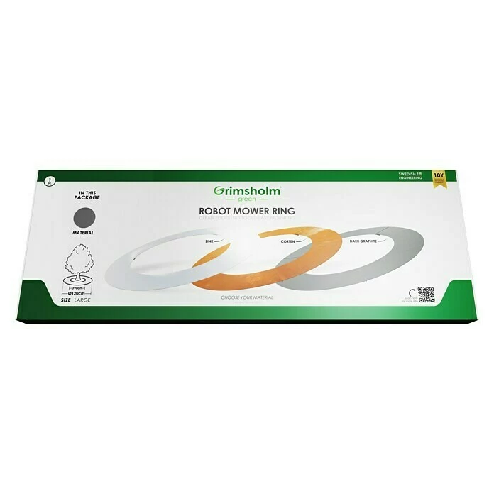 Der Mähroboterring erzeugt eine klare Kante auf Rasenhöhe, um dem Roboter das Schneiden zu erleichtern. Das Trimmen um Bäume und andere Objekte herum wird so deutlich reduziert. Der Ring besteht aus grau bemaltem Magnelis Stahl mit aussergewöhnlichem Korrosionsschutz.