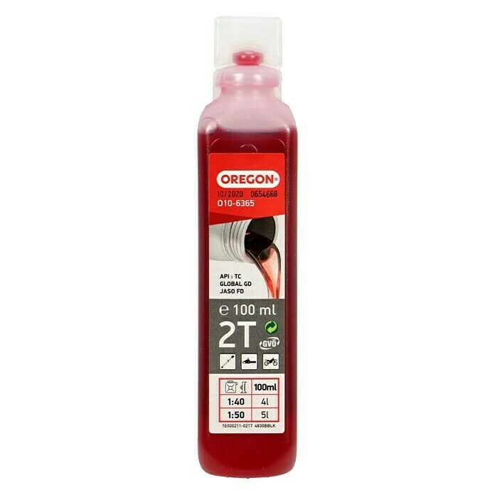 Das selbstmischende Universal – Motorenöl von Oregon enthält sowohl reinigende als auch korrosionsverhindernde Wirkstoffe. Es eignet sich ideal für die Gemischschmierung von luft- und wassergekühlten Zweitaktmotoren aller Fabrikate. Das Zweitaktöl kann somit sowohl für Mofas, Mopeds, Kleinkrafträder und Motorroller, als auch für Motorsägen, Rasenmähern und Notstromaggregaten verwendet werden.